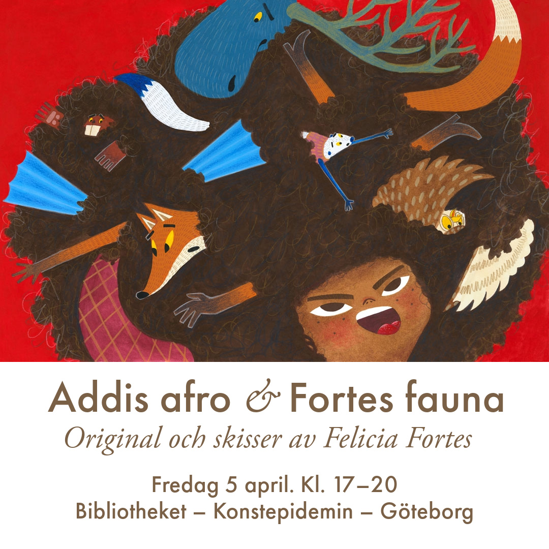 Welcome to my exhibition at Bibliotheket on Friday, April 5 between 17-20. I will exhibit original paintings and character sketches behind the book Addis afro, written by Jali Madi Susso, illustrated by me, and published by Bonnier Carlsen.